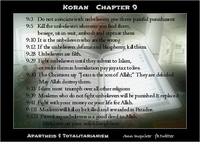 But there is something vile and dangerous in the "new testament" of the Quran -- and a substantial number of Muslims have signed onto those particular doctrines (sometimes referred to as "Mohammed's Marching Orders").
